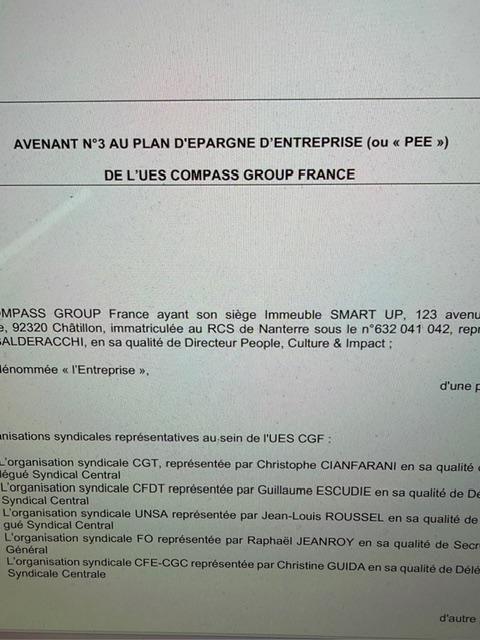 AVENANT N°3 AU PLAN D'EPARGNE D’ENTREPRISE (ou « PEE ») DE L’UES COMPASS GROUP FRANCE